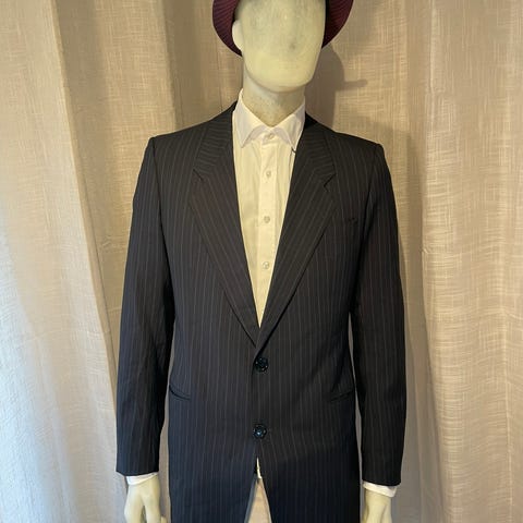 90/00- talls stil; mørk koksgrå melert med ispedd røde og okergule vertikale striper.