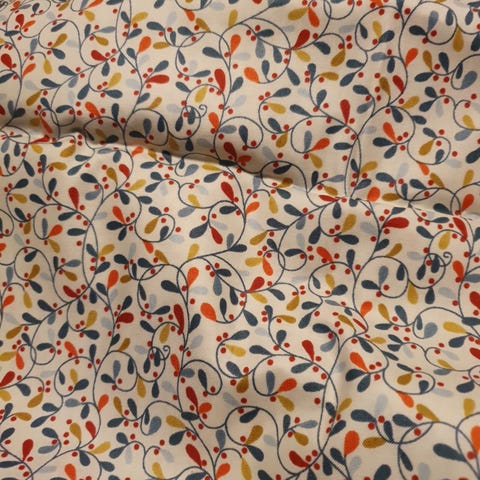 Pakke med forskjellige tekstiler i ulike mønstre og farger. Stoffene er sammenrullet og bundet med bånd. Passer til syprosjekter og håndarbeid.
