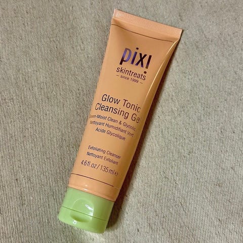 Pixi Glow Tonic ansiktsvann med en volum på 250 ml. Produktet har en lys lilla væske og er designet for hudpleie.
