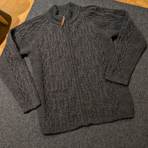 Mørkelilla ullgenser fra Lanulva i den tjukkeste modellen (hustavika). Størrelse 12 år.