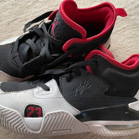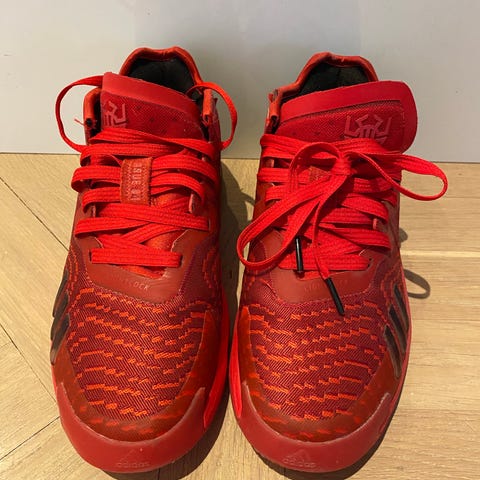 Adidas basketballsko i størrelse 40 2/3. Skoene er svarte med hvite detaljer og designet for basketballbruk. Pent brukt
