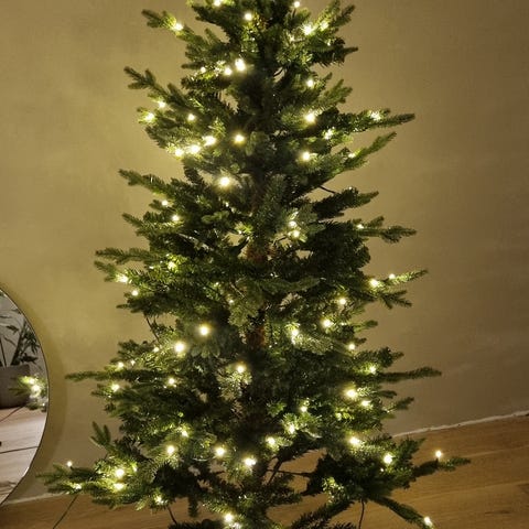 Dekorativt juletre laget av metal,designet for innendørs bruk. Har et unikt lagdelt mønster som gir et naturlig uttrykk.
