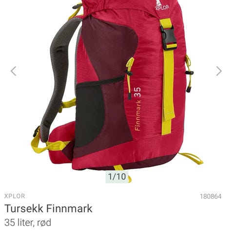 Måler 47cm på ryggen, usikker på antall liter. Passer fint til korte turer, dagsturer.