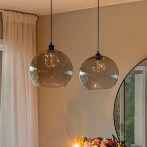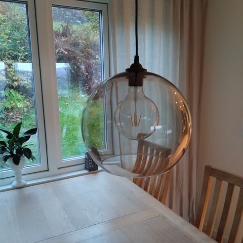 Selger en IKEA Jacobsbyn taklampeskjerm i klart glass med lampeoppheng.