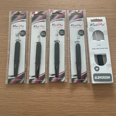 Heklenålstørrelser: 3.0, 3.5, 4.0, 4.5, 5.0, 5.5 og 6.0 mm