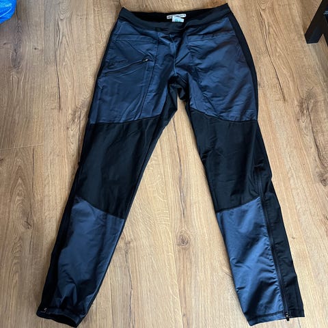 Brukt en gang og fremstår som ny.Kroppsnær modell i nydelig stretch og mykt bredt strikk i livet og som sitter godt på.Foran og nederst på bena har buksen Stretch 4 tm som er fukttransporterende og hurtigtørkende .