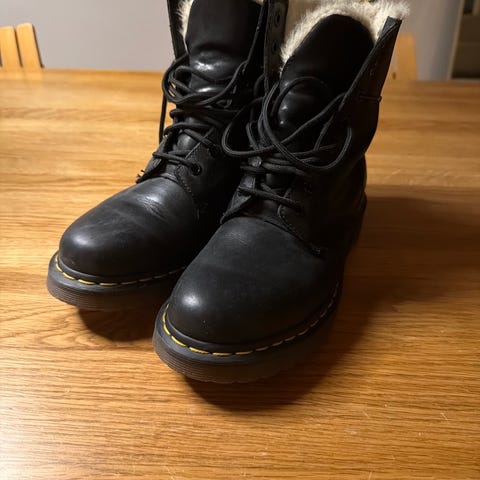 Dr. Martens vinterstøvler i størrelse 36, svart farge. Støvlene har et varmt fôr som egner seg for kalde værforhold. Materialet er slitesterkt og designet for å gi god komfort og beskyttelse mot kulde.