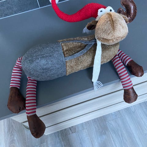 Dekorasjon som 2 reinsdyr og slede selges. Lengde er ca 35 cm. Er laget av plast og pyntet med glitter. Man må være glad i glitter da det drysser ganske bra. Det ene festet til lenken fra slede til reinsdyr er litt løst. Må hentes, sender ikke.