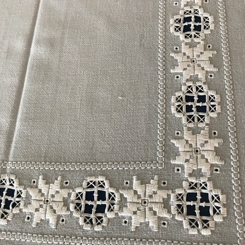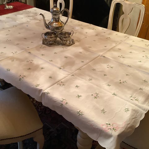 Flott hvit duk, som ny, med broderinger.