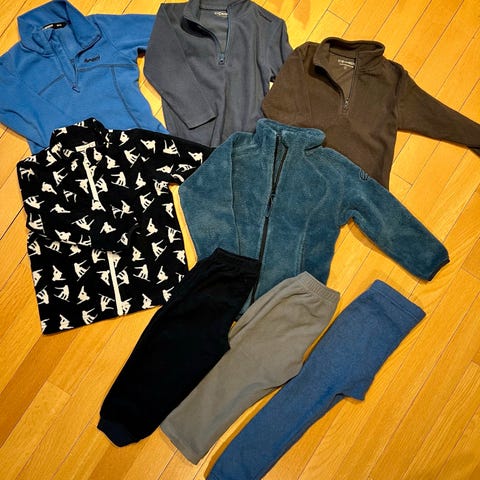 Fleccepakke bestående av fleeceset, fleecedress og vindfleecejakke.