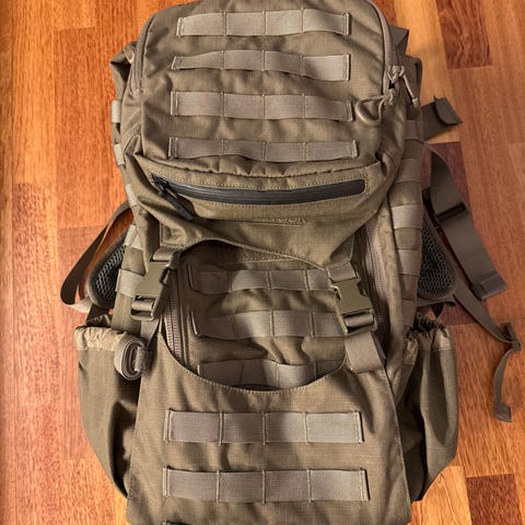 Ryggsekk med system for å bære tyngre våpen med optikk. Velprøvd militær modell som takler tyngre oppakning og gode løsninger for organisert utstyrskontroll. 44 liter.