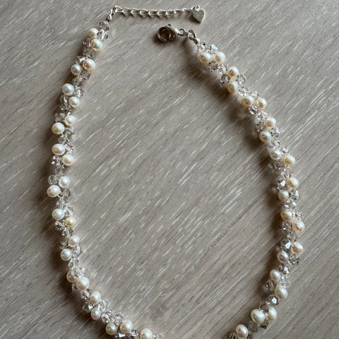 Kors halssmykke i 925 sølv og schwarovski steiner. Brukt kun 2 ganger. Kjøpt for vel 10 år siden hos Mestergull i Bergen.