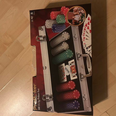 Innhold: Brikker, kortstokker og nødvendig tilbehør (dealer button etc.)