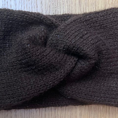 Håndstrikket, hjemmestrikket pannebånd i perlestrikk med refleks, refleksgarn selges. Kan sendes mot at kjøper betaler porto.