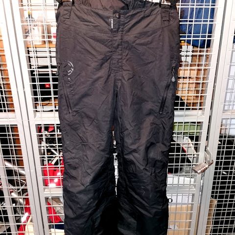 Ski/slalombukse Missing Link for damer i størrelse 38. Buksa er grå og laget i materiale egnet for vintersport og utendørsaktiviteter. Den har 2 lommer med glidelås og lufteglidelås på hver side på låret, samt justerbar midje for god passform. Strikk nederst for å ha utenpå skoa. Stoff utenpå: Poly stretch og foret med poly micro fleece. Buksa er nesten ikke brukt. Selges kr 300.
