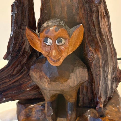 Dinosaur vegglampe i eik med touchfunksjon