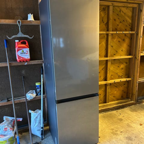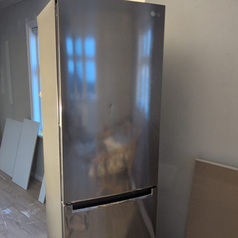 Samsung (modell RB34J3515SS) kombinasjonskjøleskap med fryser. Modellen har No Frost-teknologi for å forhindre isdannelse. God stand og fungerer bra. Den siste hyllen i fryseren er litt ødelagt, men kan fortsatt trekkes ut. Nypris rundt 8000 kr.