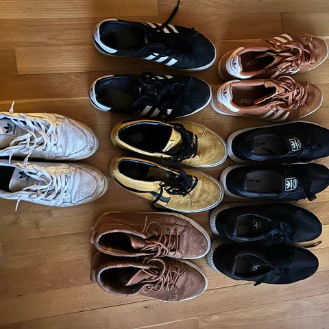 Skoene er godt brukt og bærer tydelig preg av alder og bruk. Dette er ikke nye eller strøkne sko, men originale Jordans som kan egne seg for samler, prosjekt/restaurering eller som brukssko.