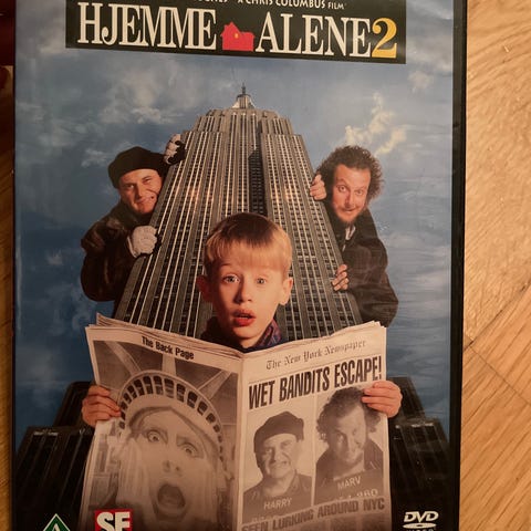 Hjemme Alene 2 DVD med filmen Hjemme Alene 2. DVD-format for avspilling i kompatible enheter.