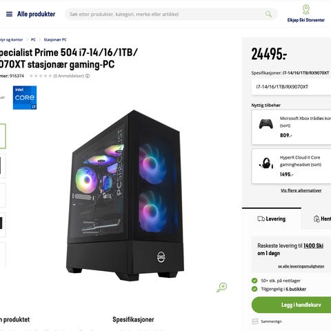PCSpecialist Prime 350 R7-7X/16/1000/4070 Super stasjonær gaming-PC