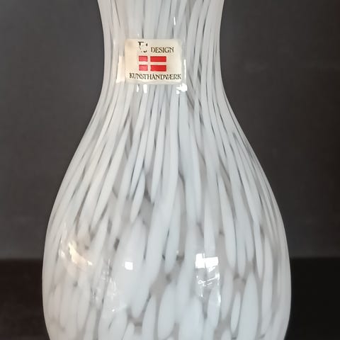 Irene Harvik, liten flakong. Kunstglass, håndlaget, gravert. Høyde ca 21 cm, diameter ca 7 cm