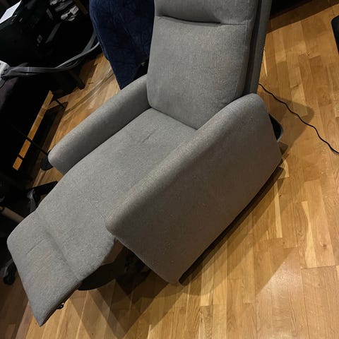 Pent brukt lenestoerl. Kan legges helt ned. Elektrisk som gjør at stolen kan legges helt ned og fotskammel kommer opp. Kan leveres søndag 21 des mellom Sandefjord og Oslo. 1300 kr for den ene som ikke virker 1500 for den som virker. Sannsynligvis ikke så vanskelig å reparere.
