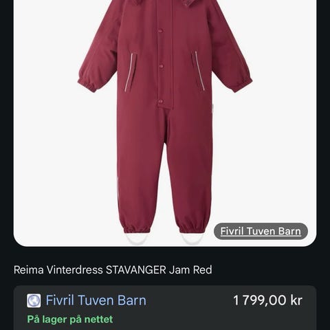 Pent brukt Reima vinterdress selges. Ingen hull eller synlige skader. Må hentes