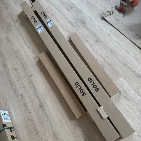 Døren har ligget i boden en stund. Den er uåpnet. Ny pris 5890 på byggmakker.