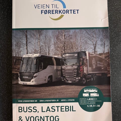 Veien til Førerkortet for Buss, Lastebil og Vogntog. Tegninger og skriving på 3 sider i boka.