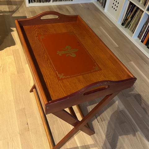 Et lite bord med klaffer og skuff