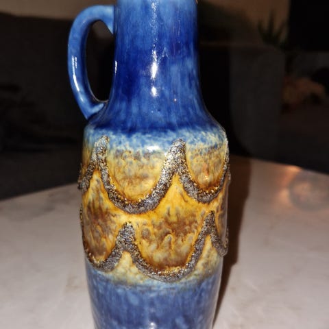 Ikoniske farger, keramikk, med etikett, feilfri. H 23 cm.