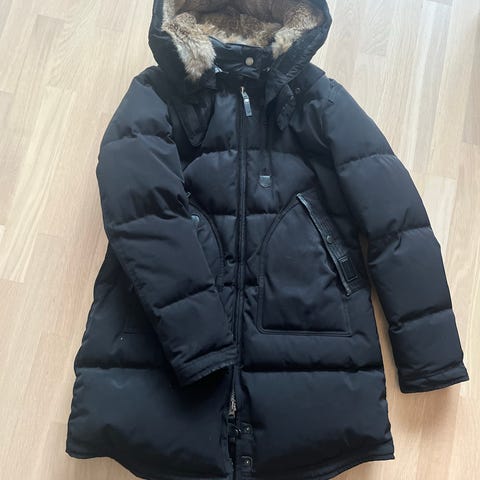 H&M dunjakke i størrelse M. Det er 80% dun og 20% fjær. Jakken er svart og noe oversized i størrelsen. Den kan strammes i livet med snøring. Veldig god og varm jakke til vinteren. Ingen anmerkninger og pent brukt.