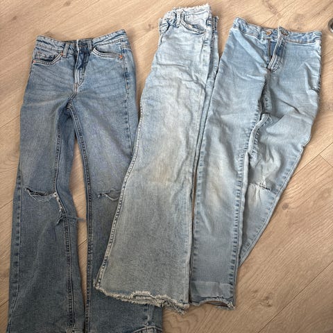 Liten klespakke med tre par jeans i str 110, fra Lindex og HM.