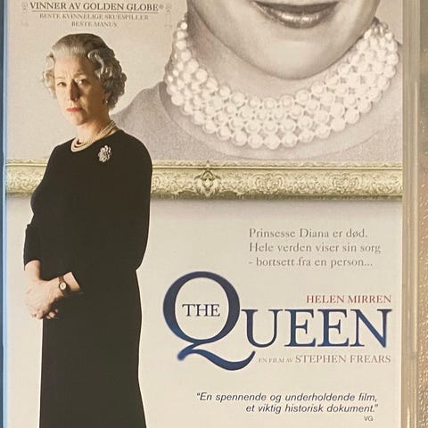 DVD med filmen The Queen. Inneholder en dramatisering av hendelser knyttet til dronning Elizabeth II.