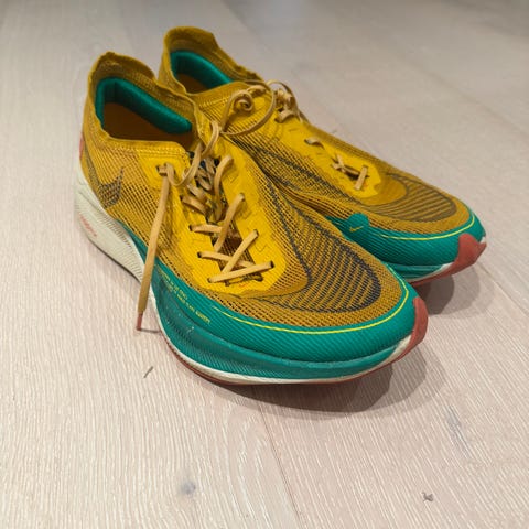 Selger mine tilnærmet nye Vaporfly Next% 2. Kun løpt med et par ganger på mølle, maks 30km, så de har lang levetid igjen! Størrelse 38