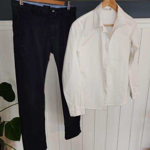 Hampton Republic 27 bukse i blå polyester, størrelse 158 og Cubus bomull skjorte str 152.