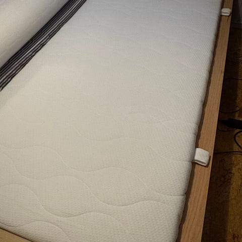 Brisk madrass fra Møbelringen i str. 120x200. Den var lagt i en av to gjesterommene som aldri var brukt. Akkurat nå finnes den i Voss, men kan leveres i Bergen eller et sted mellom de to byene, mot pris tillegg etter avtale. Ønsker MP 2000 kr.