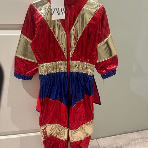 Karneval pirat kappe H&M Rød unisex barn jakke i størrelse 98/104, laget av polyester. Jakken har dekorative detaljer foran og mansjetter i svart med gullfarget kant. Passer for barn i alderen 3-4 år.