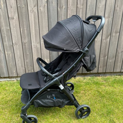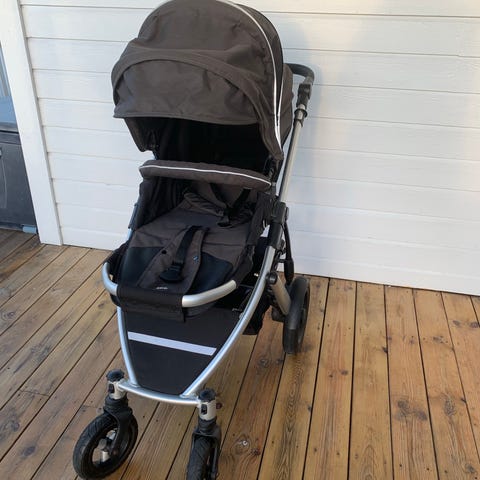 Britax barnevognsbag i svart farge med tilbehør inkludert teppe, regntrekk og myggnett. Samt adaptere. Designet for å gi komfort og beskyttelse til barnet under bruk.