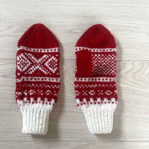 Strikket i Sandnes fritidsgarn, godt tova varme og gode.