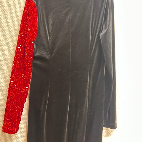 Shein festkjole i størrelse L, rød farge og laget av polyester. Kjolen har lange ermer som glitrer.