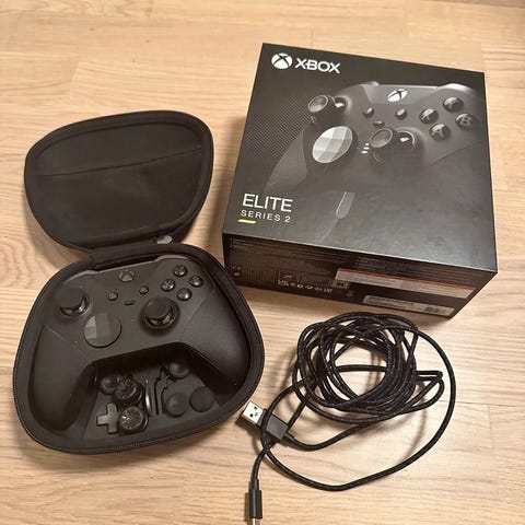 Microsoft Xbox Elite Series 2 trådløs kontroller i svart farge. Leveres med oppbevaringsetui og ekstra utskiftbare deler for tilpasning.