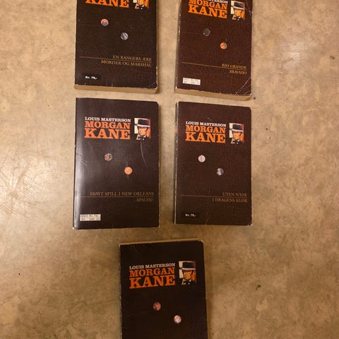 Selger 77 Stk. Morgan kane pocketbøker. Har også: Mustang,Clay Allison,Louis Masterson og Alaska romaner. Sender med posten
