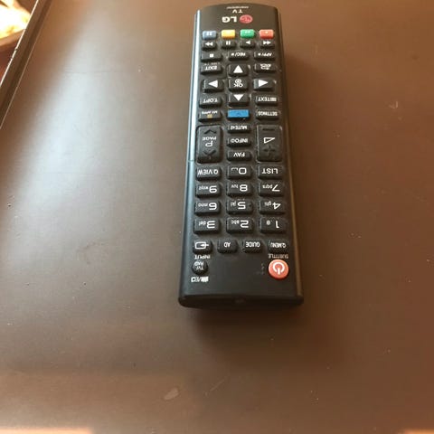 Telenor fjernkontroll med standard knapper for navigasjon og kontroll. Designet for bruk med kompatible Telenor-enheter. Fungerer trådløst og har et kompakt, svart design.