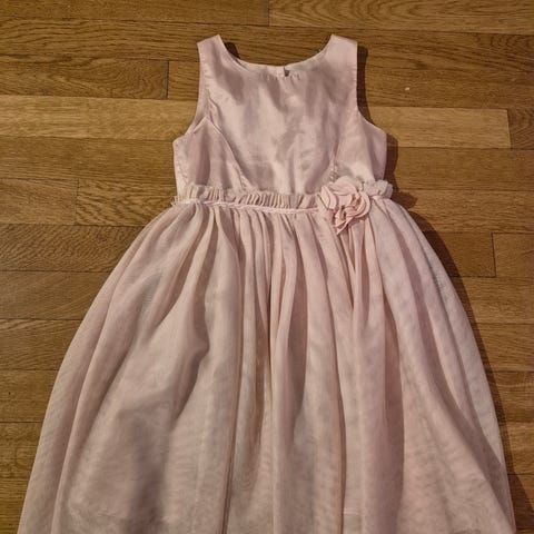 Søt strikkekjole. I utgangspunktet pent brukt. Et hull på armen som lett kan sys. Ellers små skjønnhetsfeil. Lappen er klippet bort, men er str 110/116. Ullblanding, klør ikke.