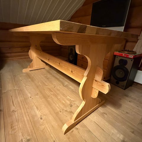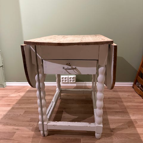Flott gammelt norskt kjøkkenbord som kan trekkes ut til 124cm.