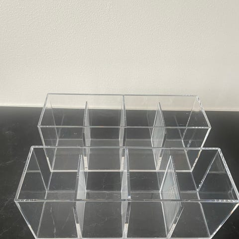Et dekorativt speilbrett og en matchende eske med lommetørklær.