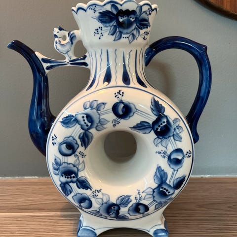 Koppene og kaffekannen har motiver fra barokk/romantikk.