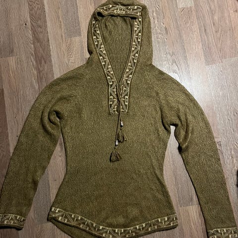Flott mosegrønn strikkejakke som er av høy kvalitet fra Kari Strikk. Det står størrelse S men den kan passe en M også avhengig av passform. Kun prøvd, selges til en brøkdel av nypris! Den perfekte julegaven.