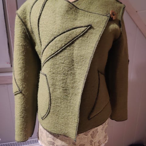 Mosegrønn strikkejakke